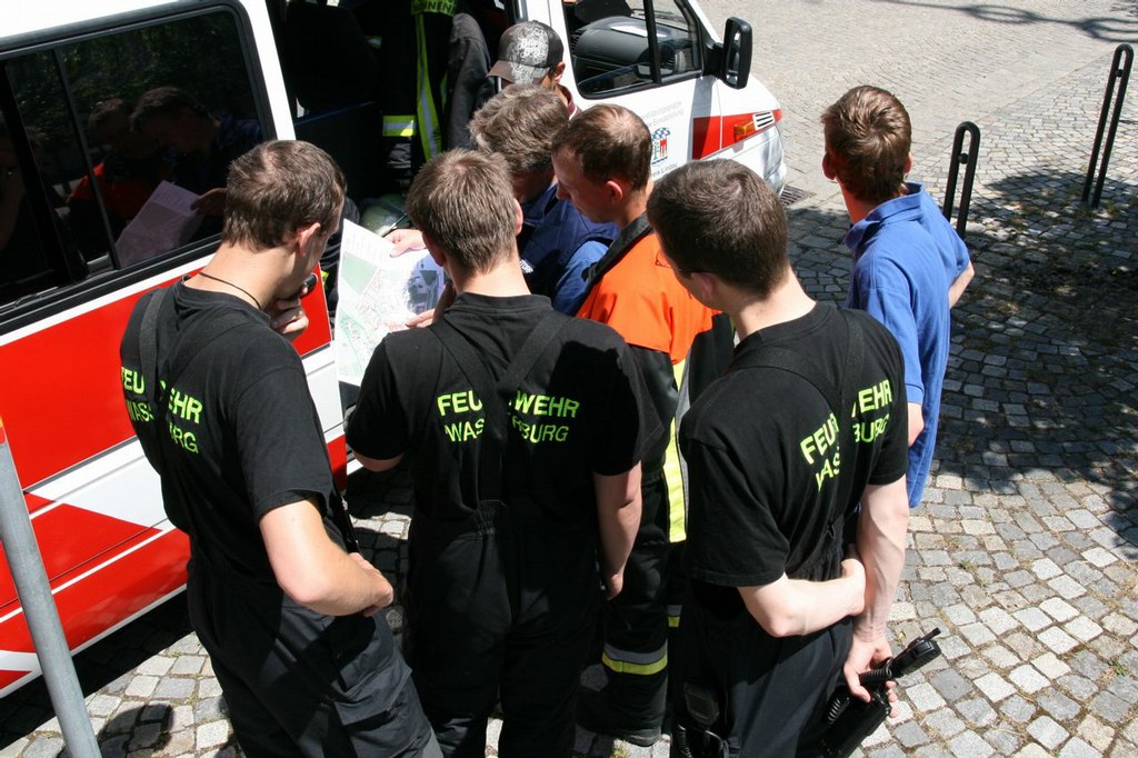 Gegen 13:30 Uhr trafen sich alle Wehren im Bereitstellungsraum Ladestraße in Wasserburg. Ab 14:00 Uhr wurden die einzelnen Feuerwehren in 5 Minuten Abständen, vom Kater, zur Einsatzstelle alarmiert.