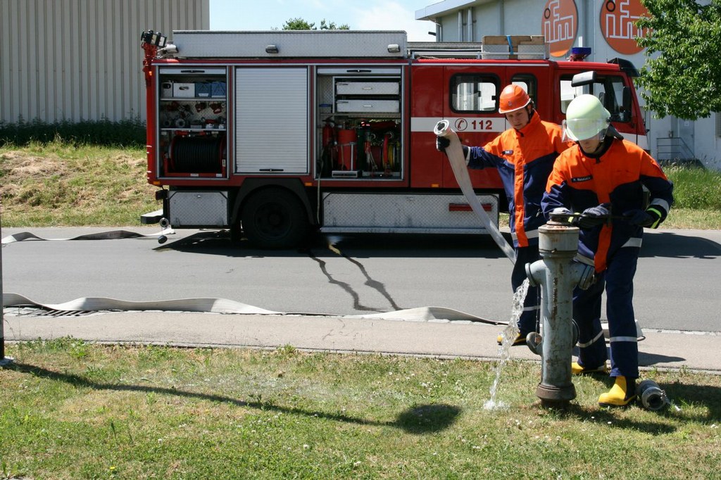 Angenommene Lage war ein Vollbrand der Tennis- und Squashhalle im Gewerbegebiet Hege. Um den Zuschauern und den Jugendfeuerwehrlern auch etwas Aktion zu bieten, folgte die Anfahrt Richtung Tennishalle unter Sondersignal. Am Einsatzort angekommen wurden wir vom Einsatzleiter eingewiesen wo wir zu parken und wo wir unser Wasser herzuholen hatten. Am Standort angekommen hieß es absitzen und antreten. Nachdem alle Anweisungen erteilt waren starteten die Jugendfeuerwehrler mit ihrem Löschaufbau unter der strengen Aufsicht von einigen aktiven Feuerwehrmitgliedern, einigen zivilen Zuschauern und der gesamten Kreisbrandinspektion. Nach ca. 45 Minuten hatten alle Wehren ihren Teil beigetragen und es konnte um 14:45 Uhr Wasser halt gegeben werden.