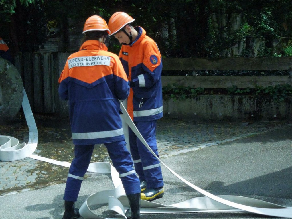 Insgesamt waren 150 Wehrler von 13 Feuerwehren mit Jugendlichen von zwölf bis 17 Jahren und ihren Betreuern im Einsatz. Die Kommandanten der Wehren sowie Kreisjugendfeuerwehrwartin Julia Jentzsch (Opfenbach) beaufsichtigten die Übung. Kreisbrandrat Friedhold Schneider (Oberreute) war begeistert von der Arbeit der Jugendlichen: „Es könnte nicht besser sein. Das spricht auch für die gute Ausbildung, die von den Jugendwarten bei den Wehren geleistet wird.“