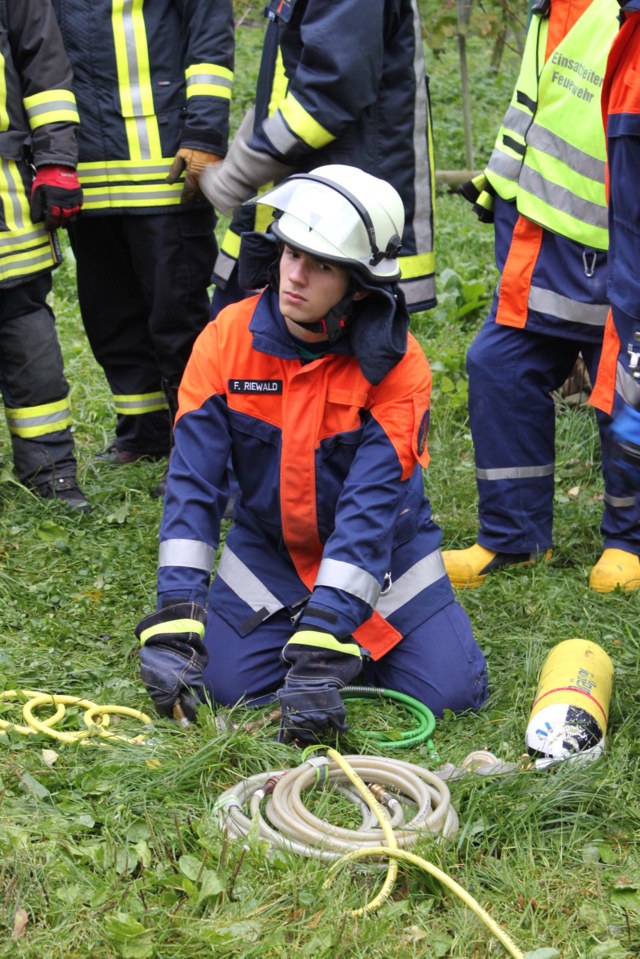 Nach knapp einer Stunde und sichtlich durchnässt konnten die Jugendlichen wieder einrücken. Nachdem die Fahrzeuge wieder aufgerüstet, alle Schutzanzüge zum Trocknen aufgehängt und sich innerlich mit warmem Tee und Kakao aufgewärmt wurde konnte mit dem Mittagessen begonnen werden.