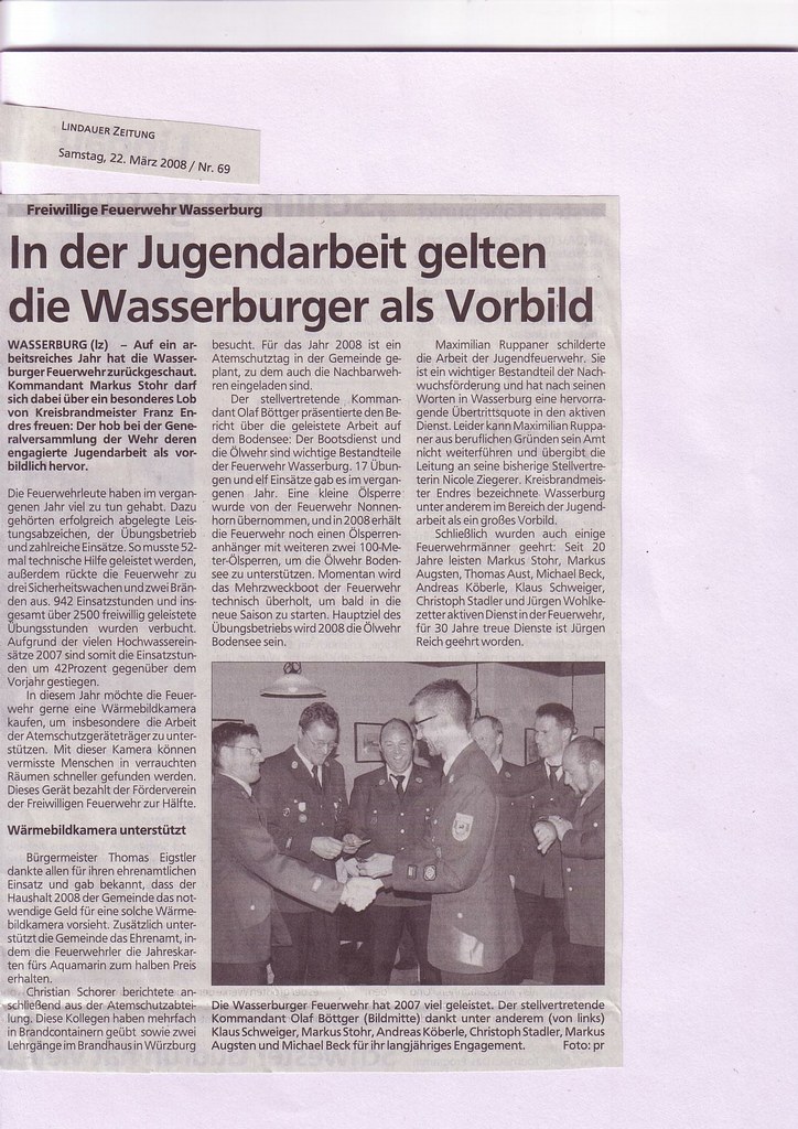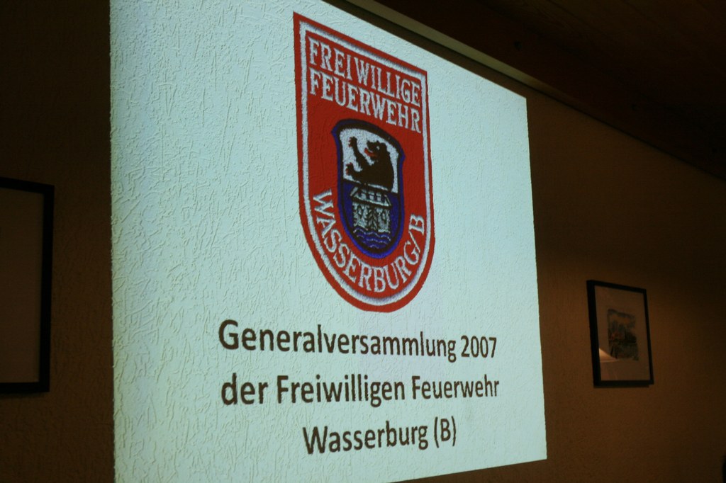 Die Generalversammlung der Freiwilligen Feuerwehr Wasserburg für das abgelaufene Jahr 2007 fand am 15. März 2008 in dem „Haus des Gastes“ in Wasserburg statt.