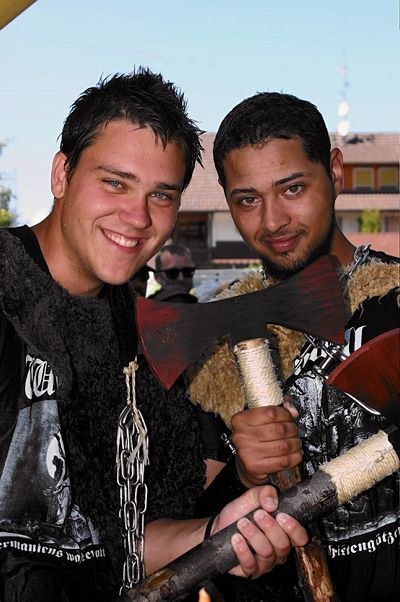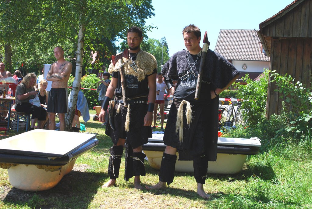 Auch die Verkleidung macht das Vorwärtskommen oft sehr schwer. "Das Fell saugt sich ganz schnell mit Wasser voll. Rudern ist dann kaum mehr möglich", schnaufen Clemens Liebhardt und Baschtl Reich, die als "die Jungs mit den Riesenrudern" angetreten sind. Aus dem Rennen scheiden sie deshalb schnell aus - aber dafür werden sie für ihre schöne Wikingerverkleidung prämiert. Das Badewannenrennen finden die beiden "saulustig und sauschwer".