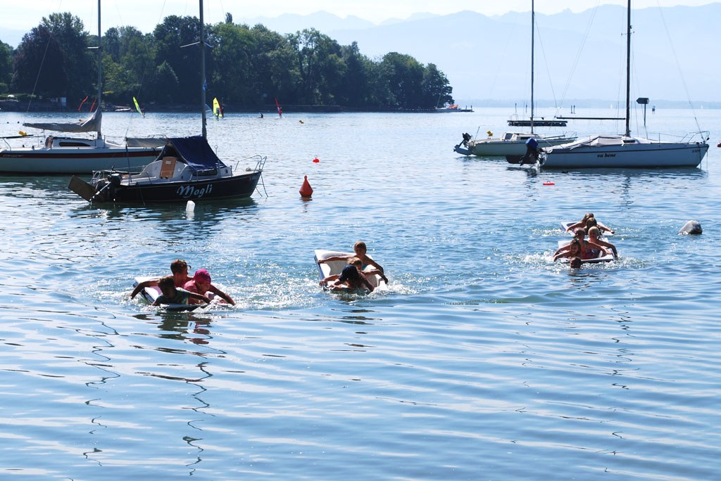 Am Vormittag hatten übrigens die Kinder und ihre Eltern ihr Badevergnügen. Acht Kinder-Mannschaften paddelten mit ihren kleinen Händen eine Runde um die Boje - das Team "Titanic" gewann am Ende das Kinderrennen.