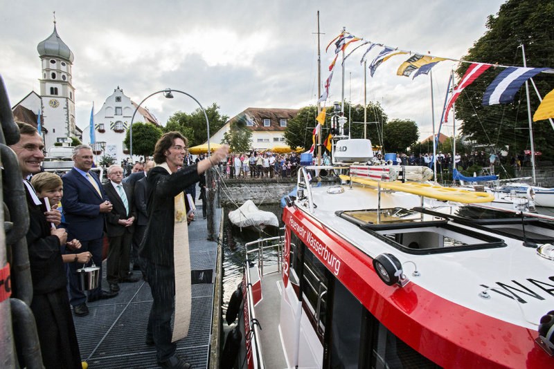Das Boot wurde von der Wasserburger Feuerwehrfrau Miriam Hohenstein auf den Namen „Eberhard“ getauft und von Pfarrer Christian Riewald und Pfarrer Martin Steiner gesegnet. Die musikalische Umrahmung des Festaktes hat der Musikverein Wasserburg gestaltet.