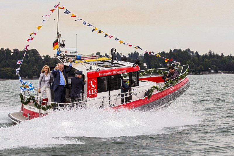 Lindau (Bodensee) – Der Bodensee ist Europas größter Trinkwasserspeicher mit einer hervorragenden Wasserqualität. 175 Millionen m³ Wasser werden jährlich entnommen, durch die 3,7 Millionen Menschen mit Trinkwasser versorgt werden. Auch deshalb ist ein besonderer Schutz des Bodensees zwingend notwendig. Der Freistaat Bayern hat nun ein neues Mehrzweckboot für die Ölwehr finanziert, das bei der Freiwilligen Feuerwehr Wasserburg stationiert ist. Die Kosten belaufen sich auf 260.000 Euro. Bei den Tauffeierlichkeiten dankte Landrat Elmar Stegmann dem anwesenden Innenminister Joachim Herrmann für die Unterstützung: „Gerade hier auf dem Bodensee mit seinem großen Gefahrenpotential sind wir auf eine gute Ausstattung angewiesen.“