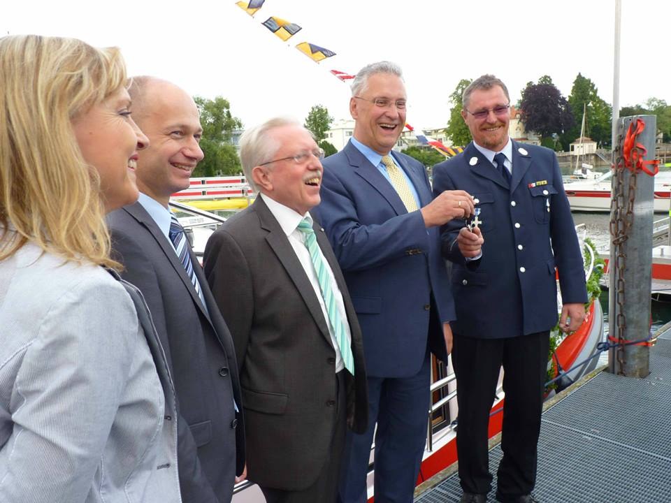 Staatsminister Joachim Herrmann übergibt neues Mehrzweckboot für Ölwehr