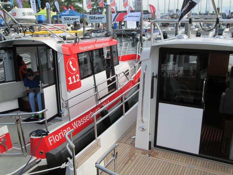 Während der gesamten Dauer der Messe in Friedrichshafen wird die Paragon 25 im Messehafen liegen und an bestimmten Tagen ebenfalls das extra kommerzielle Modell der Feuerwehr Wasserburg.