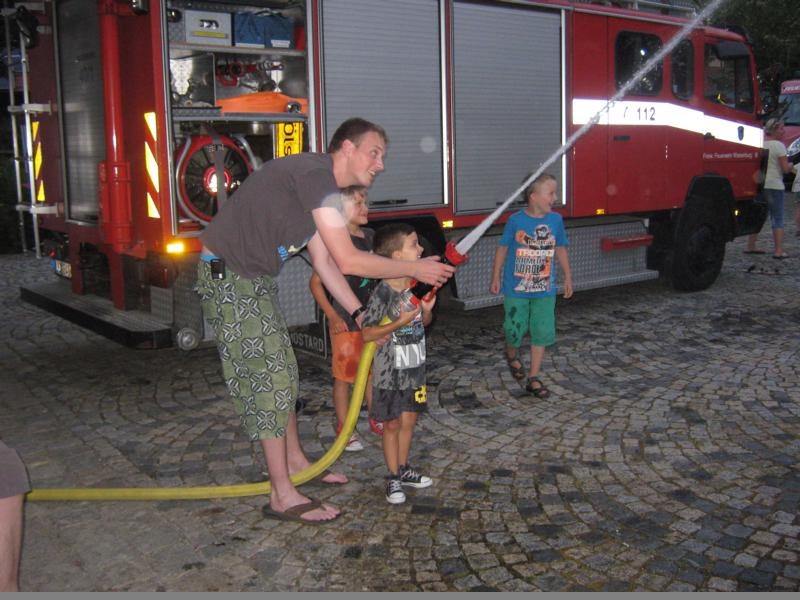Als besonderes Highlight durften die Kinder Abends noch die Feuerwehr Wasserburg besuchen und hatten sichtlich Ihren Spaß als Ihnen von erfahrenen Feuerwehrleuten alles gezeigt wurde. Auch Fragen kamen nicht zu kurz und die Kinder waren begeistert mit Fragen zur Stelle, die alle beantwortet wurden. Als Krönung durften Sie noch eine Runde mit dem Manschaftstransportwagen fahren und den Eltern mittels Lautsprecher einen Gute-Nacht-Gruß überbringen. Bei der Wasserschlacht zum Abschluss blieb keiner trocken.