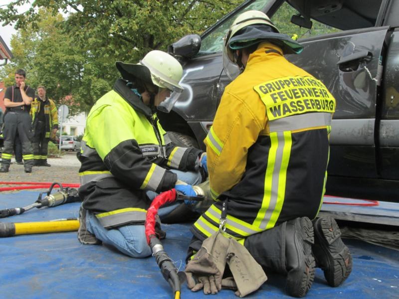 In Wasserburg können die Gäste erfahren, wie anstrengend solche Bergungsarbeiten sein können: Wer will, darf mit der 20 Kilo schweren Metallschere ein Stück aus einem Schrottauto schneiden. Die Feuerwehren wollen einen Einblick geben in ihre vielfältige Arbeit und so vielleicht auch neue Mitglieder gewinnen. „Man steht da immer ein bisschen in Konkurrenz zu anderen Vereinen, aber in Wasserburg haben wir zum Glück eine große Jugendgruppe", berichtet Traenkle.