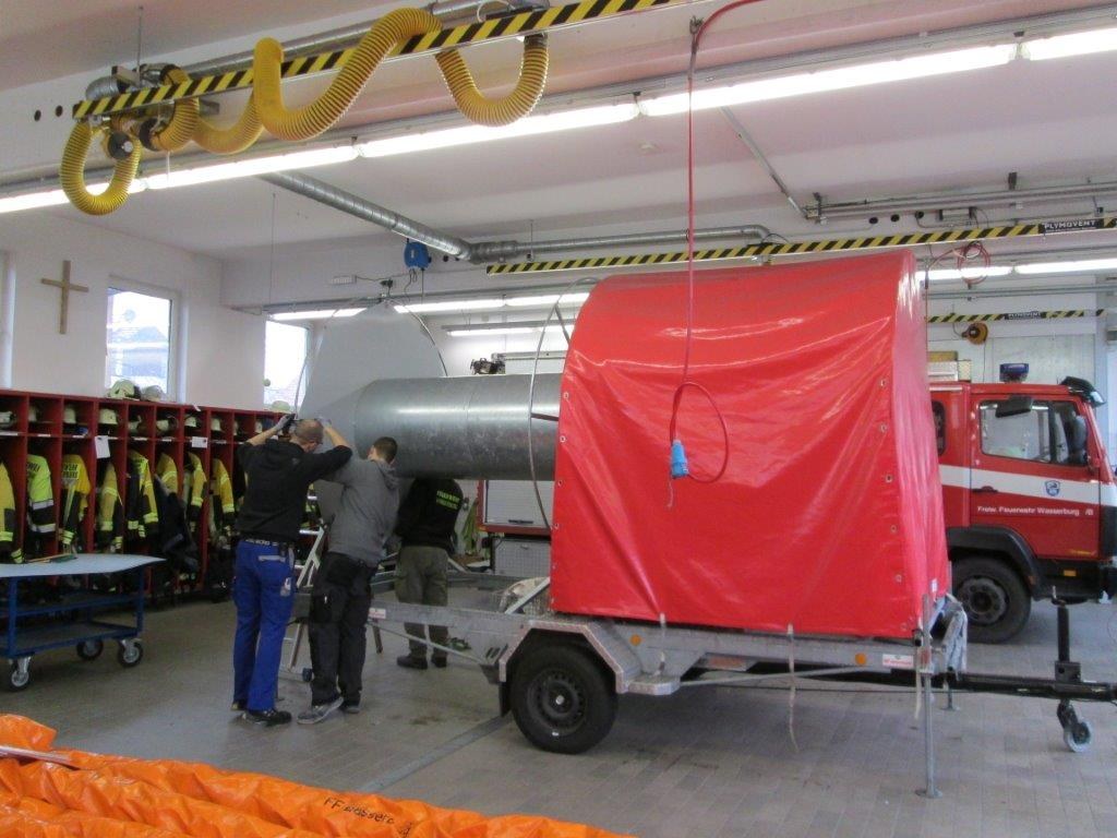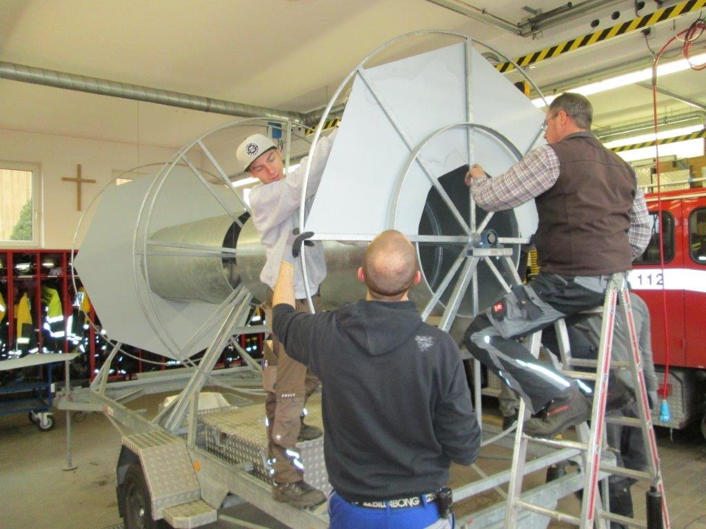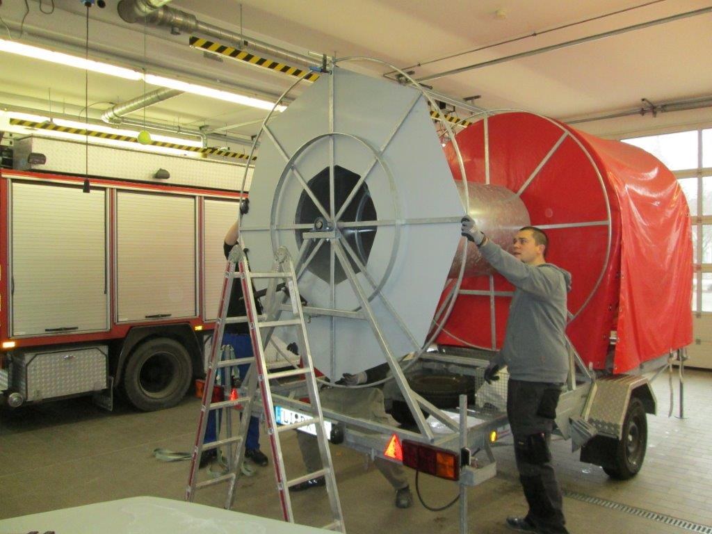 Diese Bleche wurden lange ersehnt und durch das Landratsamt Lindau im Sommer bestellt, im November traf die Lieferung dann ein. Nun wurden die vorgefertigten Bleche noch minimal angepasst und auf den Wickeltrommeln montiert.