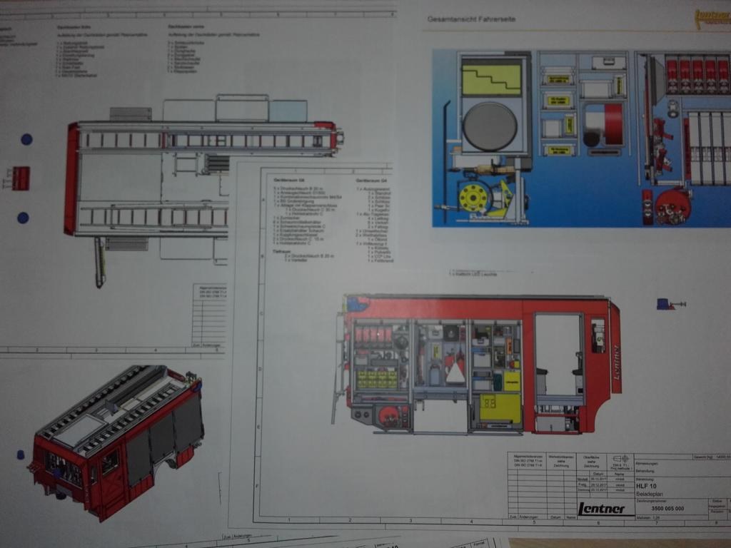 Vom Aufbauhersteller unseres HLF10 haben wir die Beladepläne zur Freigabe bekommen, diese wurden geprüft und kleine Änderungen veranlasst. Insgesamt ist der Beladeplan aber zu 95% wie gewünscht und die Fa. Lentner hat gute Vorarbeit geleistet.
