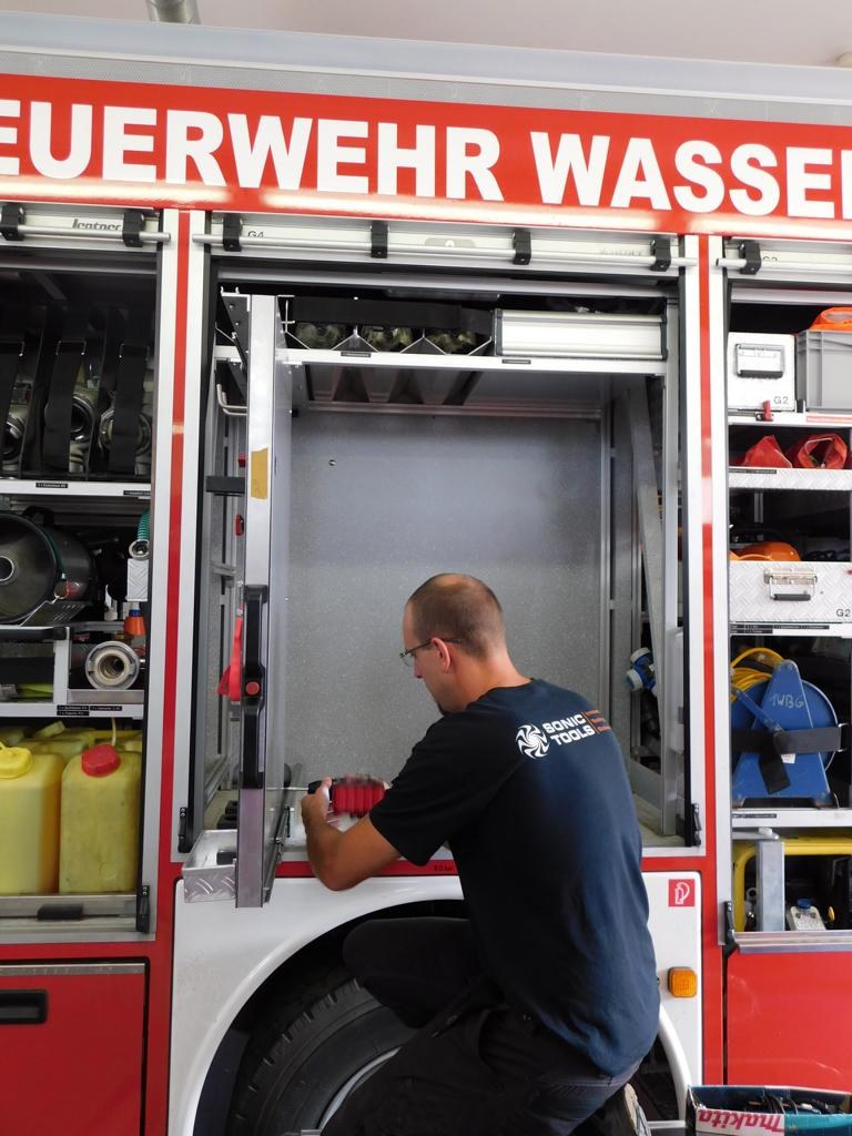Die Handwerkzeuge für den Angriffstrupp wurden auf einer Schiebewand untergebracht und können nun durch den Angriffstrupp einfacher und schneller entnommen werden.