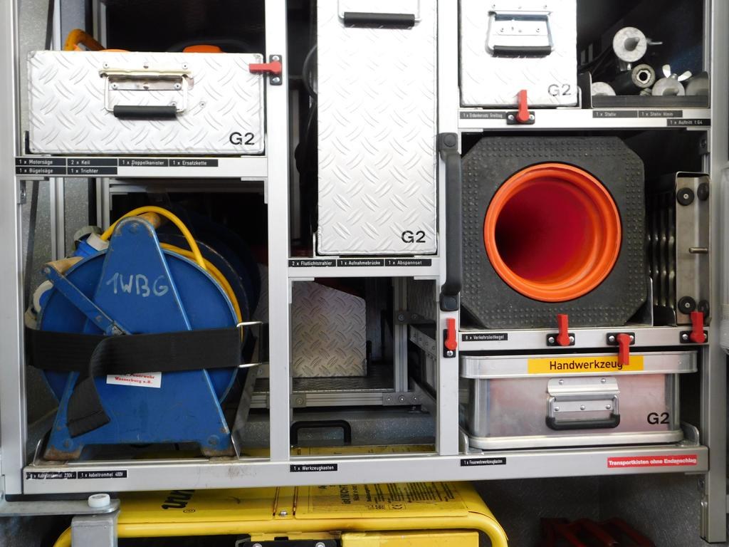 Die Aufbewahrungsorte des 2. Schnellangriffsverteilers und der Tauchpumpe wurden angepasst und an unser HLF 10 angeglichen um es der Mannschaft möglichst leicht zu machen mit den Fahrzeugen zu arbeiten.