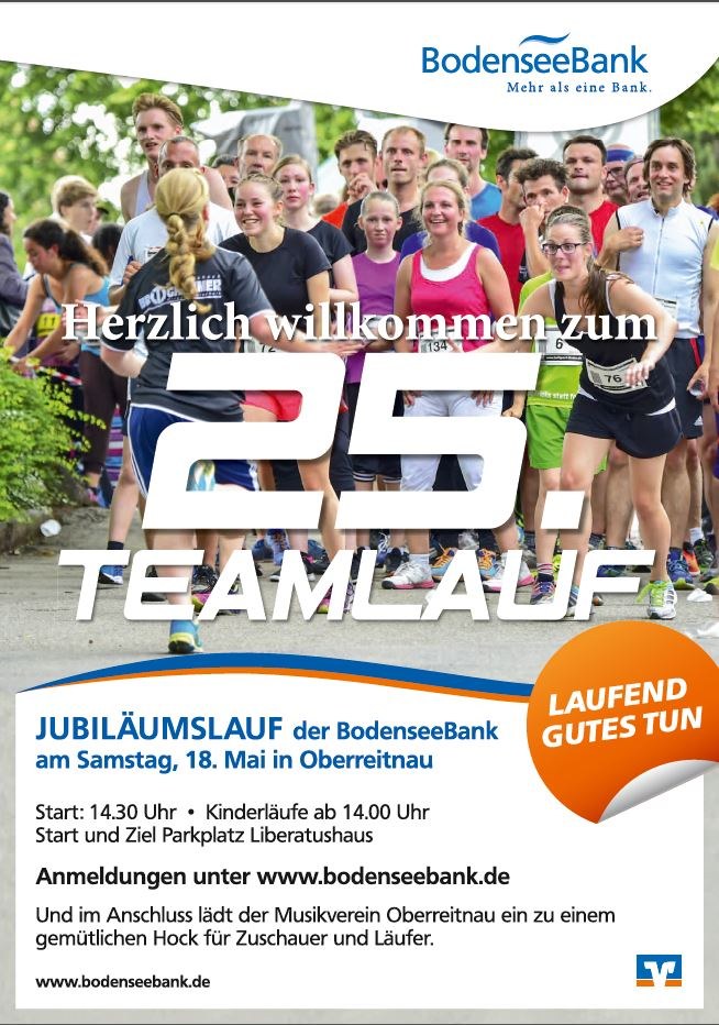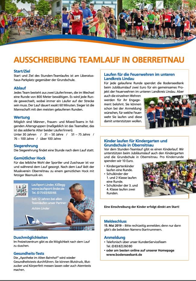 Dann veranstaltet die Bodenseebank in Oberreitnau einen Teamlauf der den Feuerwehren im unteren Landkreis Lindau zugute kommt.