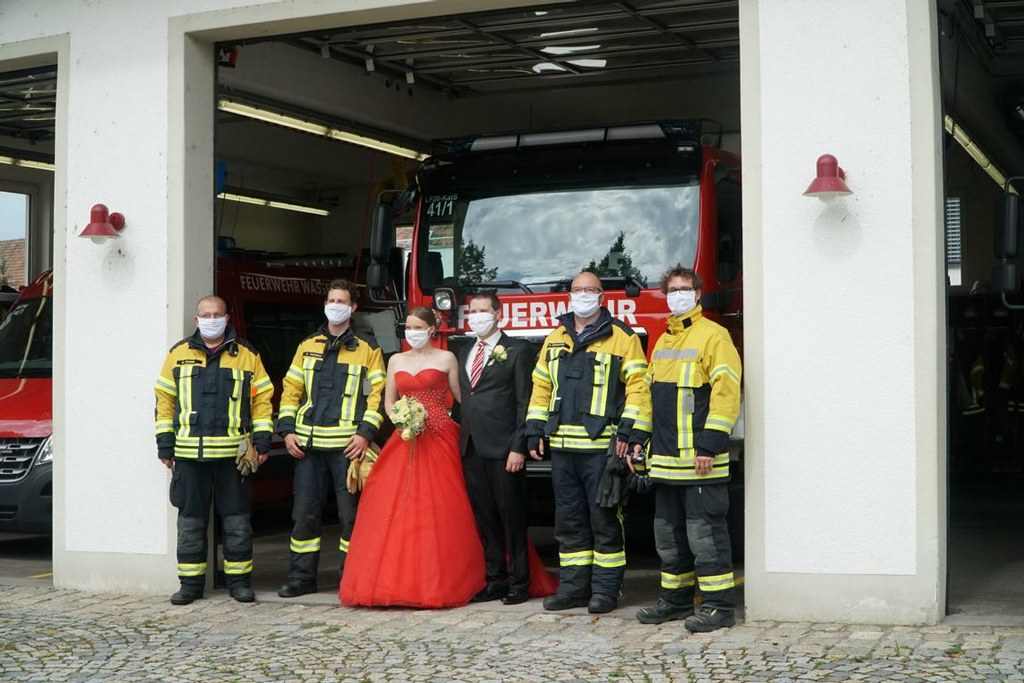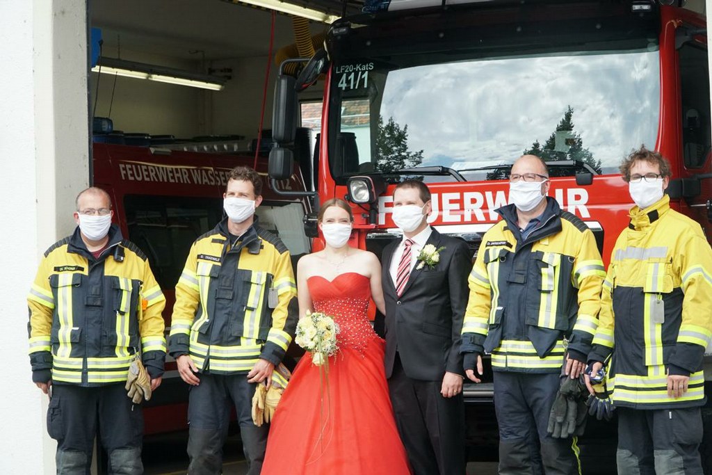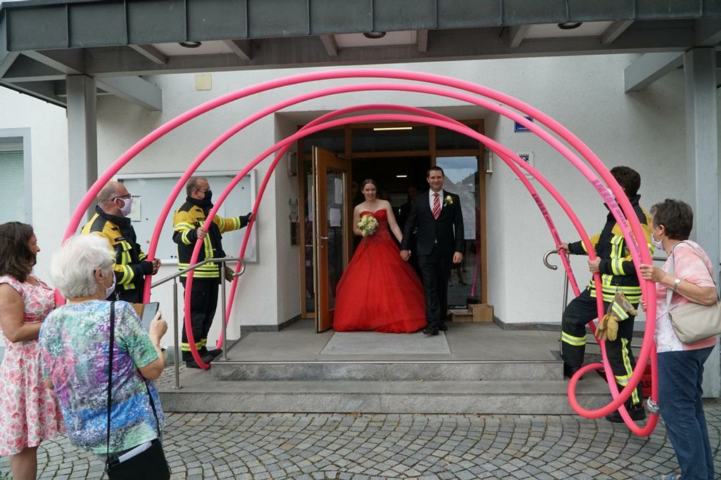 Wir haben es uns nicht nehmen lassen mit einer kleinen Abordnung nach dem Standesamt vorbei zu schauen und mit Abstand zu gratulieren.