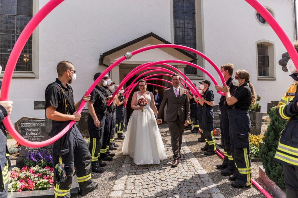 Am Samstag den 26. Juni 2021 hat unser aktives Mitglied Patrick Buck seine Sabine nun auch kirchlich geheiratet. Wir haben es uns nicht nehmen lassen mit einer Abordnung vorbei zu schauen.
