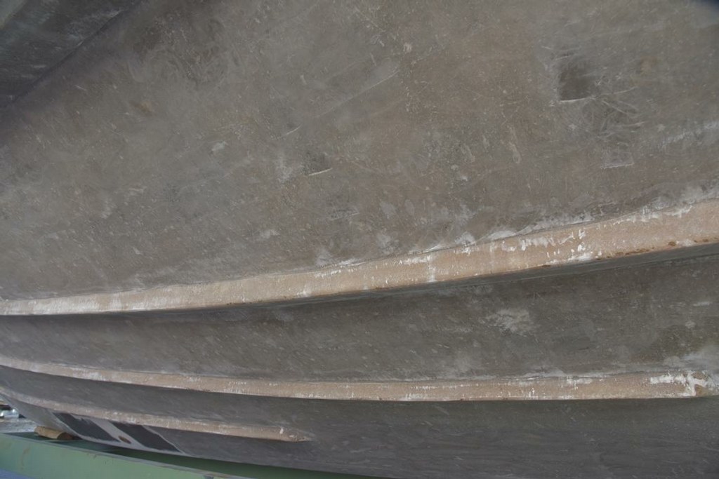 Mittlerweile wurde der komplette Rumpf sandgestrahlt, gereinigt und alle Schadensstellen freigelegt.