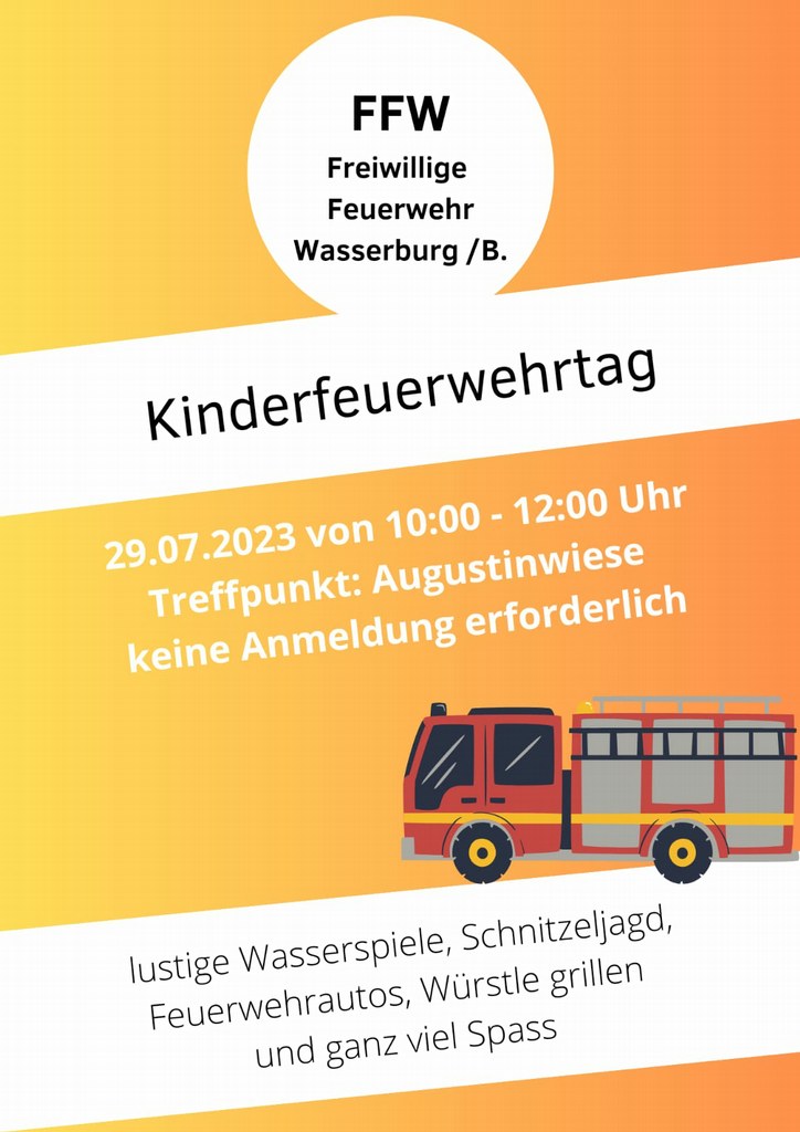 Am 29.07.2023 findet wieder unser Kinderfeuerwehrtag statt.