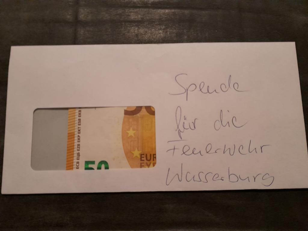 Am vergangenen Wochenende hat unser Kommandant einen Brief mit einer anonymen Spende im Briefkasten vorgefunden. Wir sehen dies als Zeichen der Wertschätzung für unsere Arbeit, und möchten uns herzlich dafür bedanken.