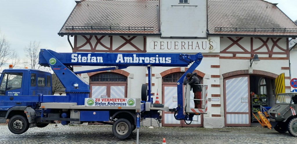 Unter anderem wurde von unserem Denkmalgeschützten Schlauchturm ein Ziegel herunter geweht, es handelt sich hierbei um handgefertigte Einzelexemplare. Glücklicherweise war noch ein Ersatzziegel vorhanden um den Wassereinbruch zu stoppen, und unser Feuerwehrkamerad Stefan Ambrosius aus Lindau half mit seiner Hebebühne kostenlos bei der Reparatur.