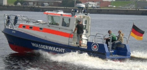 Wir beglückwünschen die Wasserwacht zu dem neuen Einsatzboot. Und wünschen dem Boot und seiner Besatzung allzeit eine Hand breit Wasser unter den Kiel und immer eine glückliche Rückkehr zum Hafen.