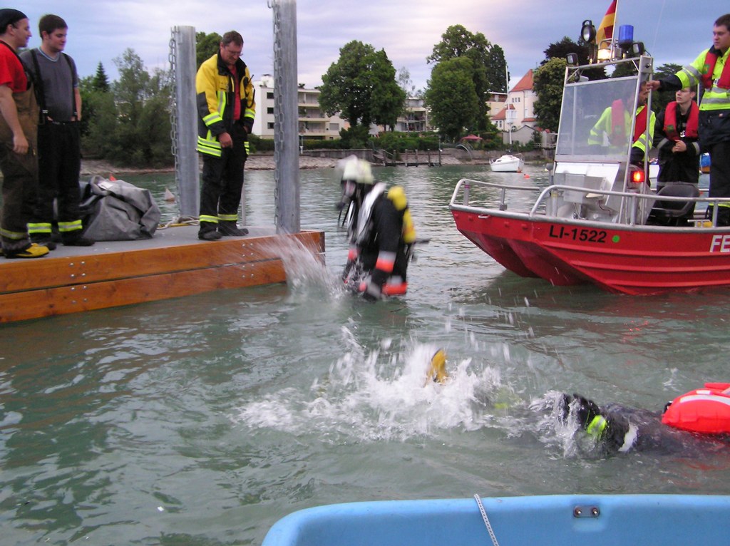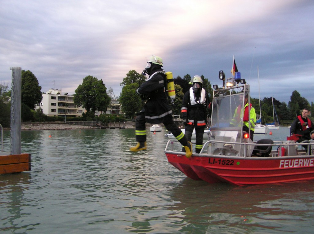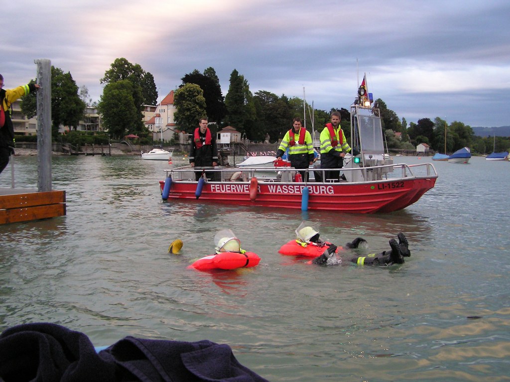 Zur heutigen Übung nahmen wir an, dass auf einem Fahrgastschiff auf dem Bodensee vor Wasserburg ein Brand ausgebrochen ist. Darauf sind Personen in Gefahr, so dass ein übersteigen auf das Fahrgastschiff unbedingt notwendig ist.