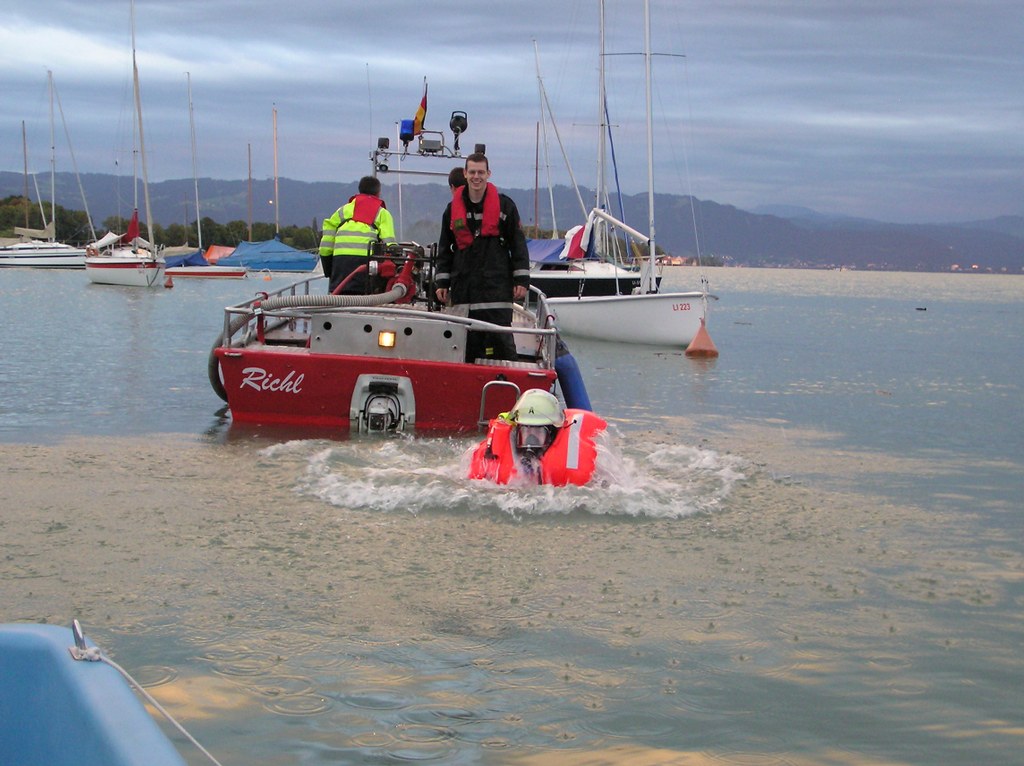 - Die Sicherheit haben wir sehr groß geschrieben. Sämtliche Tests wurden im Hafen neben dem Gästesteg durchgeführt. Dort ist das Wasser nur so tief, dass alle Kameraden stehen konnten. Ebenso befanden sich auf dem Gästesteg zu jedem Zeitpunkt weitere Kräfte, die bei unvorhersehbaren Situationen sofort eingreifen konnten.