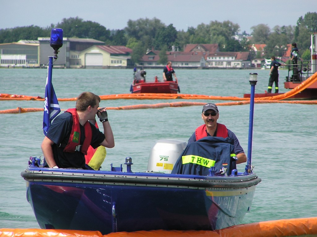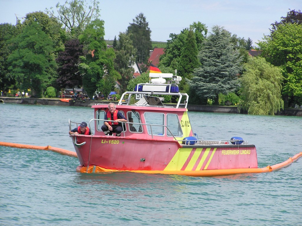 Alle Beteiligten wissen, es ist eine Übung, die Stimmung ist ausgelassen, doch die rund 90 freiwilligen Helfer haben alle Hände voll zu tun. Um 13 Uhr ist Übungsbeginn, die Boote stehen bereit, und die Helfer an Land machen sich für den Einsatz startklar. An der Ölwehrübung sind die Kräfte der Feuerwehr und des Technischen Hilfswerks aus Lindau sowie die Feuerwehren aus Wasserburg, Nonnenhorn, Friedrichshafen und Überlingen beteiligt.