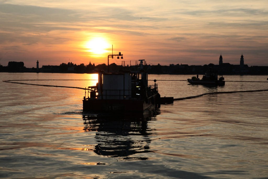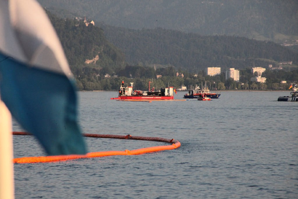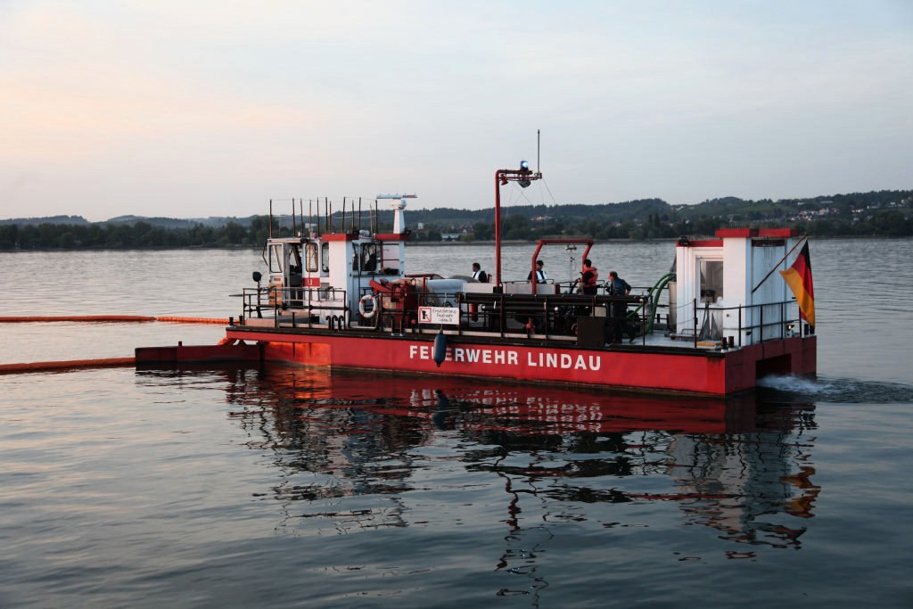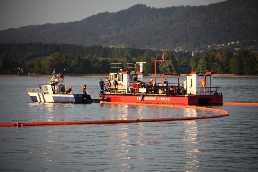 Lindau (lz) - Im Bereich Lindau, Reutiner Bucht, hat am Freitagabend eine nationale Ölwehrübung stattgefunden. Als Szenario wurde angenommen, dass ein größeres Schiff auf Grund gelaufen und durch auslaufendes Öl, das sich in einem Radius von 50 Meter um das havarierte Schiff erstreckte, der Trinkwasserspeicher Bodensee gefährdet ist.