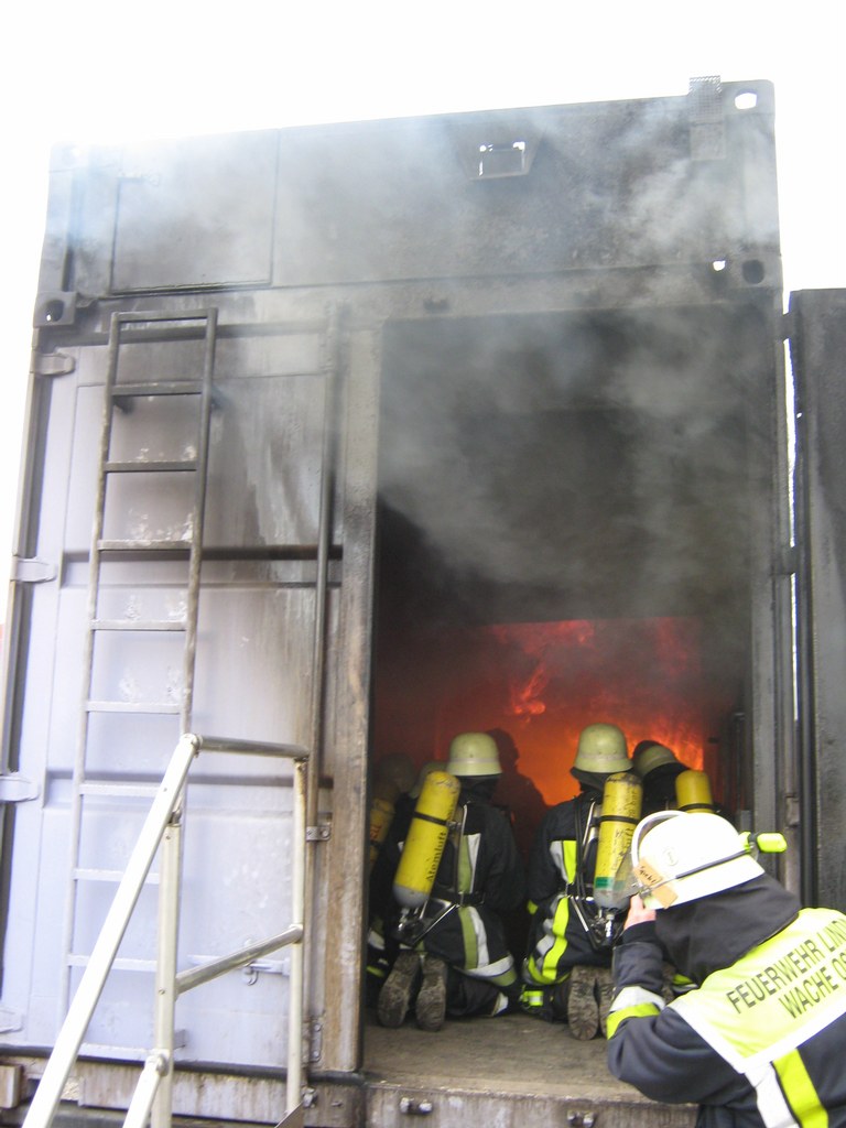Der holzbefeuerte Brandübungscontainer der Versicherungskammer Bayern machte dieses Jahr bei der Firma Metzeler in Lindau Station und 3 Kameraden aus Wasserburg durften am 17.03.2011 dort zuerst Theorie und danach einen praktischen Durchgang im Brandcontainer absolvieren.