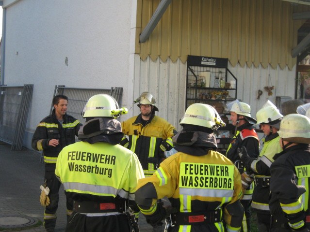 Am Samstag dann übten 32 Feuerwehrleute aus Wasserburg, Hege, Nonnenhorn, Bodolz und von der Werkfeuerwehr Metzeler ganztägig an verschiedenen Stationen den Atemschutzeinsatz. 5 externe Ausbilder aus Süddeutschland und der Schweiz unterrichteten an verschiedenen Stationen die Brandbekämpfer und vermittelten wertvolle Tipps für den Atemschutzeinsatz. So wurde durch Severin Frank von der (Feuerwehr Göppingen + Team Atemschutzunfälle) an einem Modell der Brandverlauf simuliert, der Einsatz von Lüftungsmaßnahmen demonstriert und die Chancen und Risiken dabei aufgezeigt.