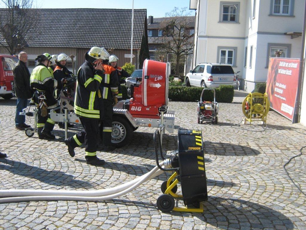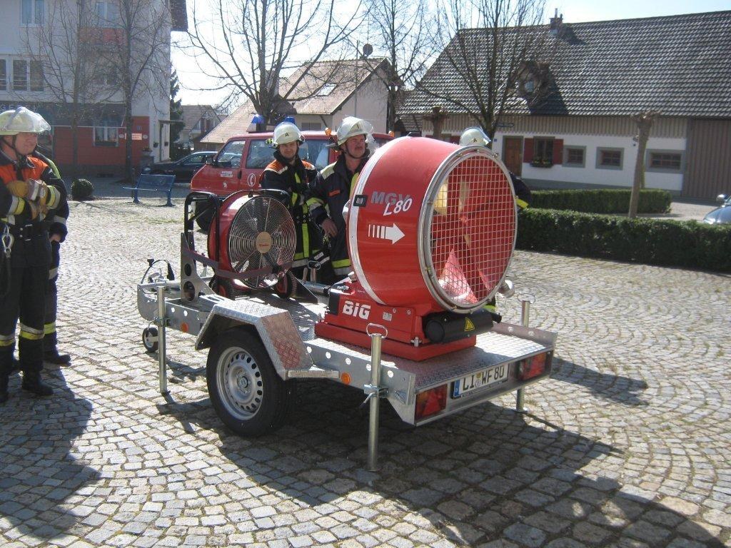 Am Samstag dann wurde das theoretische Wissen ausprobiert und die erlernten Techniken in die Praxis umgesetzt. Die bei den Feuerwehren Hege und Wasserburg vorhandenen Lüfter wurden im praktischen Betrieb eingesetzt, ergänzt um einen Großlüfter der bei der Werkfeuerwehr der Lindauer Firma Metzeler vorhanden ist und den die Kameraden der Werkfeuerwehr mitbrachten, um an der Schulung mitzuwirken. Letzterer eignet sich besonders zum Einsatz in großen Gebäuden wie z.B. Betriebsgebäuden und Tiefgaragen, er kann über die Leitstelle auch zu Einsätzen in den umliegenden Gemeinden angefordert werden. Tiefgaragen entwickeln sich immer mehr zum Problem im Falle eines Brandes, denn oft werden hier nicht nur Autos abgestellt sondern sie werden auch zum abstellen von Booten und anderen Dingen genutzt die nicht in eine Tiefgarage gehören und eine erhöhte Brandlast darstellen. "Kommt es hier zu einem Brand besteht immer auch die Gefahr das der Rauch in die angrenzen Wohnhäuser eindringt" so Wasserburgs Kommandant Markus Stohr, "hier gilt es im Ernstfall schnell mit Hilfe der Belüftungsgeräte die richtigen Maßnahmen zu treffen, dafür trainieren wir hier diesen Samstag". Zum Abschluß der Praxisschulung wurde noch eine Tiefgarage im Wasserburger Gemeindegebiet besichtigt und Probleme und Lösungsansätze vor Ort besprochen.