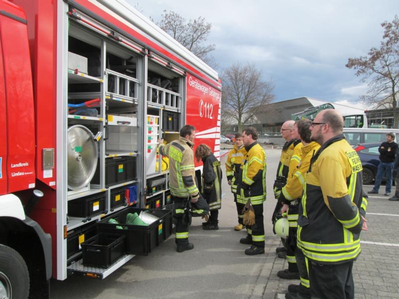 Nach dieser Übung wurde den Wasserburger Feuerwehrkameraden der neue Gerätewagen Gefahrgut des Landkreises Lindau präsentiert, der bei der Feuerwehr Weiler stationiert ist. Auf diesem Fahrzeug ist eine Vielzahl von Geräten verladen und die Wasserburger nutzten die Gelegenheit zum Austausch mit den Kameraden aus Weiler sehr rege.