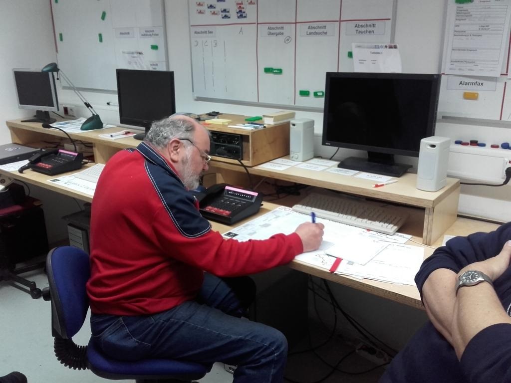 Nachdem auf Informationen des Leitfadens Wasserrettung und Suchformationen Bodensee eingegangen worden war, wobei das Augenmerk auf dem Verhalten der Bootsführer und -mannschaften lag, galt es eine Übung erfolgreich zu absolvieren.