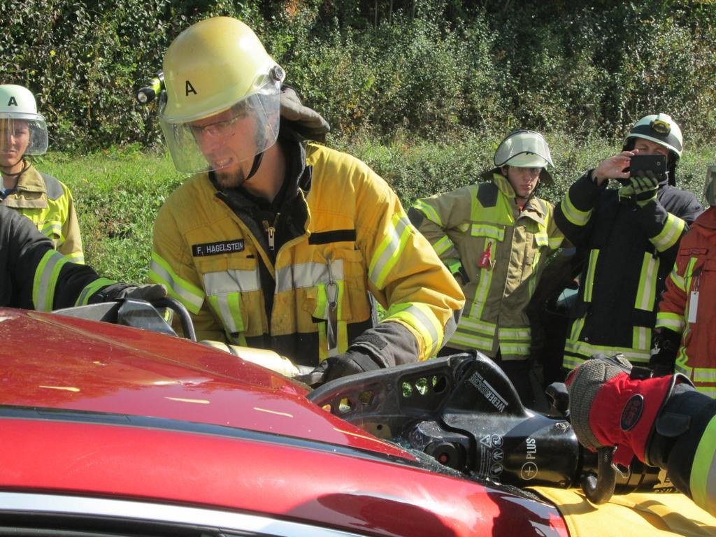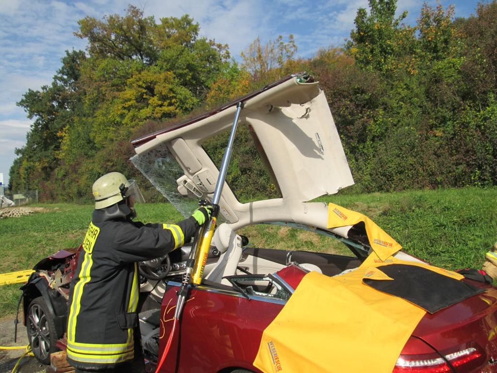 Thema war die Befreiung von Insassen speziell aus KFZ der Bauart Coupé. Die Karosserie hat Mensch und Technik alles abverlangt, und es konnten wertvolle Erkentnisse für die Einsatzpraxis gewonnen werden.
