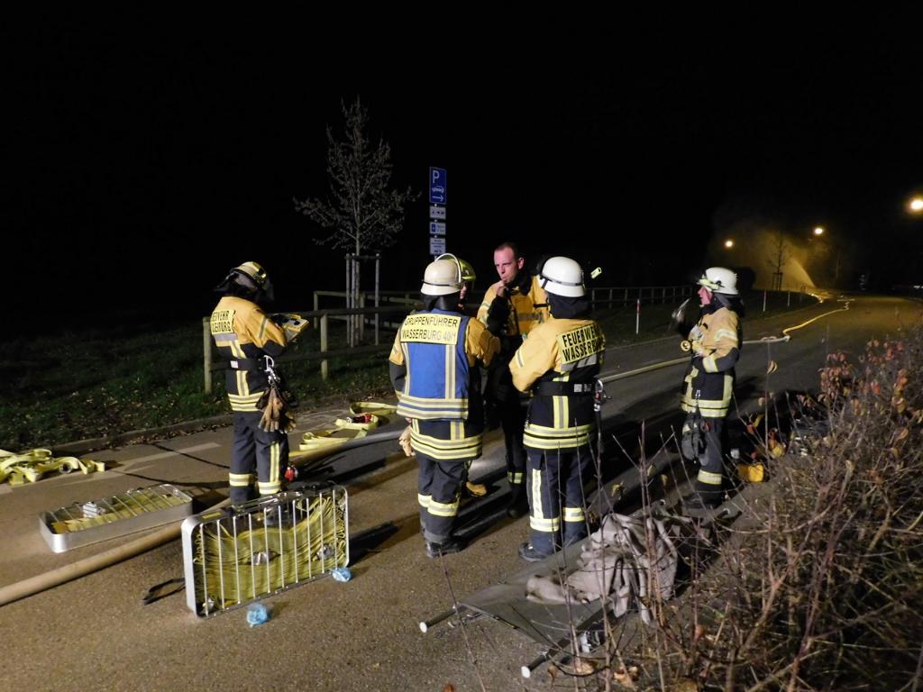 Die Feuerwehren Bodolz, Hege und Wasserburg übten die Maßnahmen zur Erkundung, Evakuierung, Menschenrettung und stabilisieren der Lage. Hierbei wurden unter anderem 2 Wasserwerfer in Betrieb genommen und eine Wasserversorgung über lange Schlauchstrecke vom Bodensee her aufgebaut.