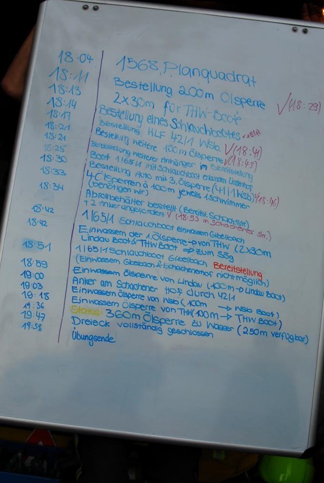 Angenommen wurde ein Austritt von Kraftstoffen aus einem Fahrgastschiff, die Aufgabe bestand in einer Verhinderung der weiteren Ausbreitung.