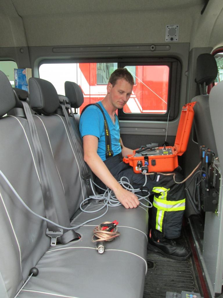 Es wurde mit der vorbereiteten Einspeisestelle das Gerätehaus mit Strom versorgt, ebenso wurde die mobile Sirene auf dem MTW installiert und Lautsprecherdurchsagen zur Warnung der Bevölkerung durchgeführt. Mittags um 12 Uhr wurde der Sirenenprobealarm sowohl mit Netzstrom als auch Strom aus dem Stormerzeuger mehrfach geprobt. Ebenso wurde die Alarmierung mittels mobiler Sirene von einem erhöhten Standort aus mit dem MTW ausprobiert.