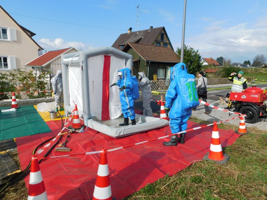 Die Feuerwehr Wasserburg war mit allen Fahrzeugen und 21 Mann an der Übung beteiligt.