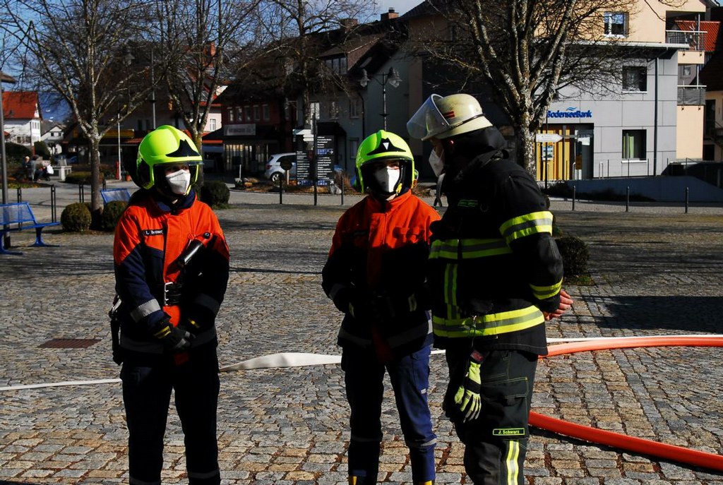 Am Nachmittag dann haben ebenfalls 5 Kameraden die MTA-Zwischenprüfung (früher Truppmann) abgelegt. Nach einer theoretischen Prüfung, die auch hier wieder von allen mit sehr gutem Erfolg abgelegt wurde galt es noch praktische Aufgaben zu bewältigen, sowohl einzeln als auch im Trupp. Auch hier zeigte sich das die Ausbildung in die Praxis umgesetzt werden konnte und alle haben auch diese Aufgabe mit Bravour bestanden. Kommandant Christian Schorer konnte deshalb direkt im Anschluss 3 der Kameraden die bereits 18 und älter sind direkt in die Einsatzabteilung übernehmen und den begehrten Funkmeldeempfänger übergeben. Sie werden jetzt in den kommenden Jahren Erfahrung im Übungs- und Einsatzdienst sammeln und natürlich weitere Lehrgänge besuchen. In einer kurzen Ansprache vor dem Feuerhaus dankte er den Prüflingen, ihren Ausbildern und den beiden Prüfern Julian Schwarz und Stefan Hener von der Feuerwehr Nonnenhorn.
