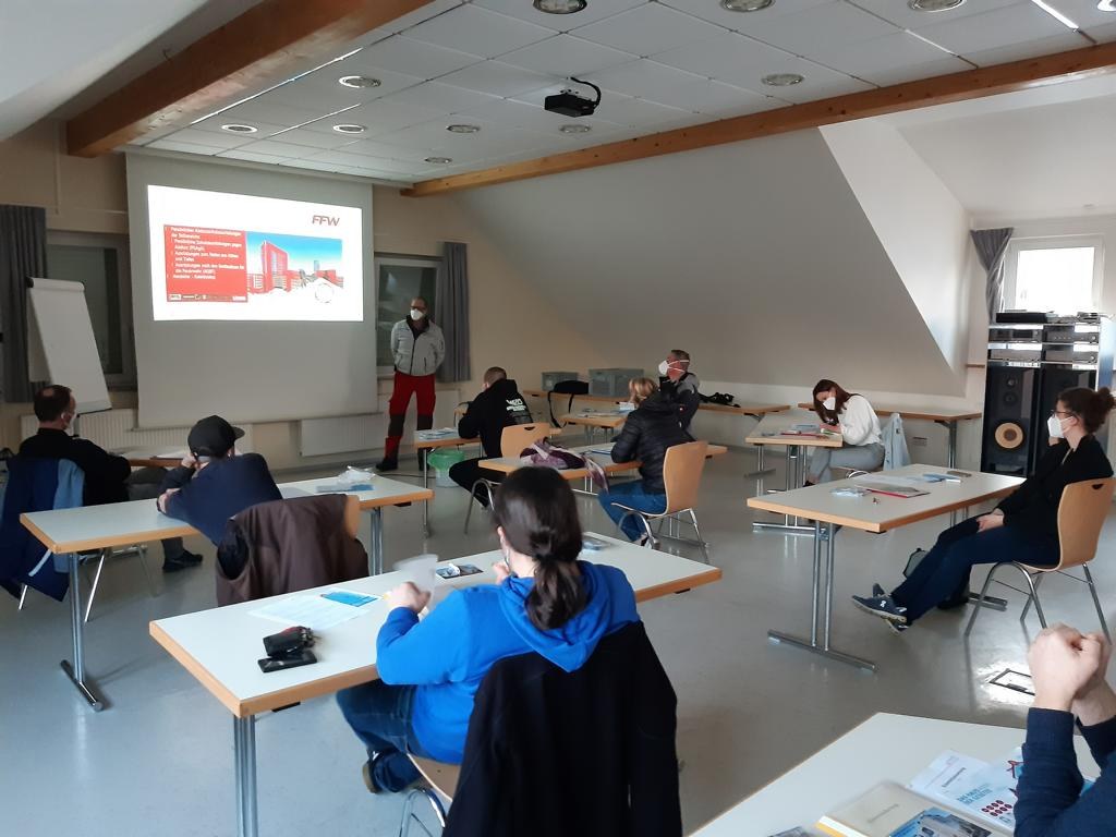 Im Lehrgang wurde das theoretische und praktische Wissen vermittelt um Arbeiten mit Absturzgefährung sicher zu gestalten und einen Absturz in Bereichen ab 2 Metern Höhe zu verhindern. Mit viel Praxiswissen war hier die Firma Rope Solutions unser Partner für die Ausbildung, am zweiten Samstag unterstützt von der Firma Glathaar mit der Drehleiter.