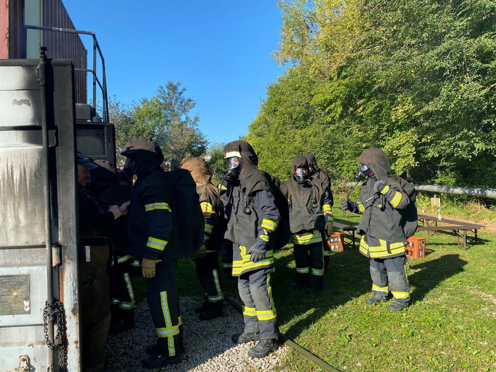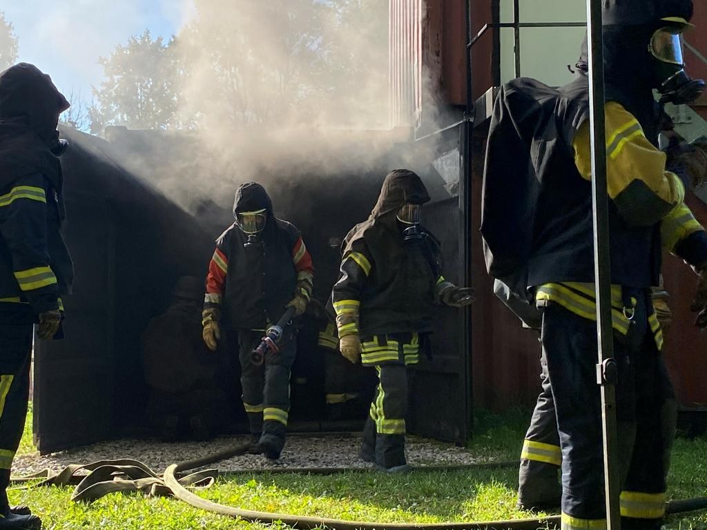 Am 25.09.2021 waren nach einem Jahr coronabedingter Pause wieder 3 Kameradinnen und 7 Kameraden von uns im Brandcontainer bei der Firma Erhatec.
