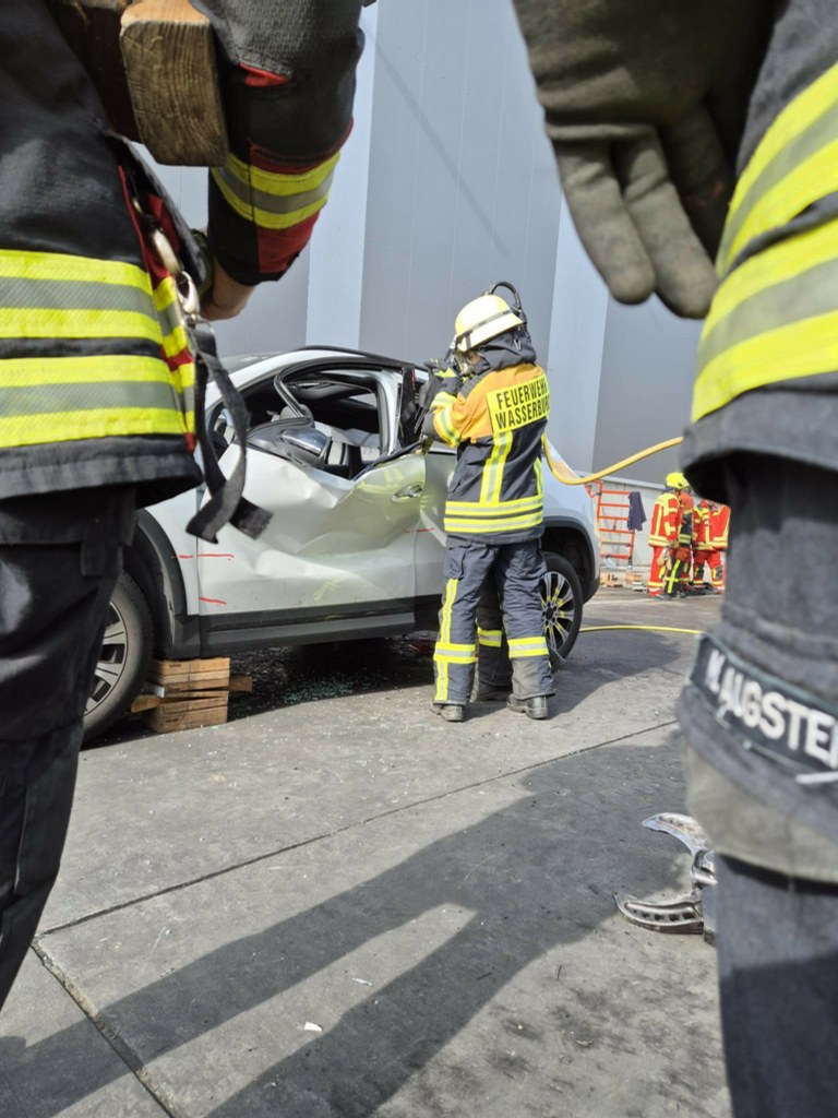 An einem neuen, elektrisch betriebenen PKW konnten wir unser Fachwissen vertiefen, Probleme bei der Rettung erkennen und die hydraulischen Rettungsgeräte, darunter auch unsere eigene neue Rettungsschere an die Grenzen bringen.